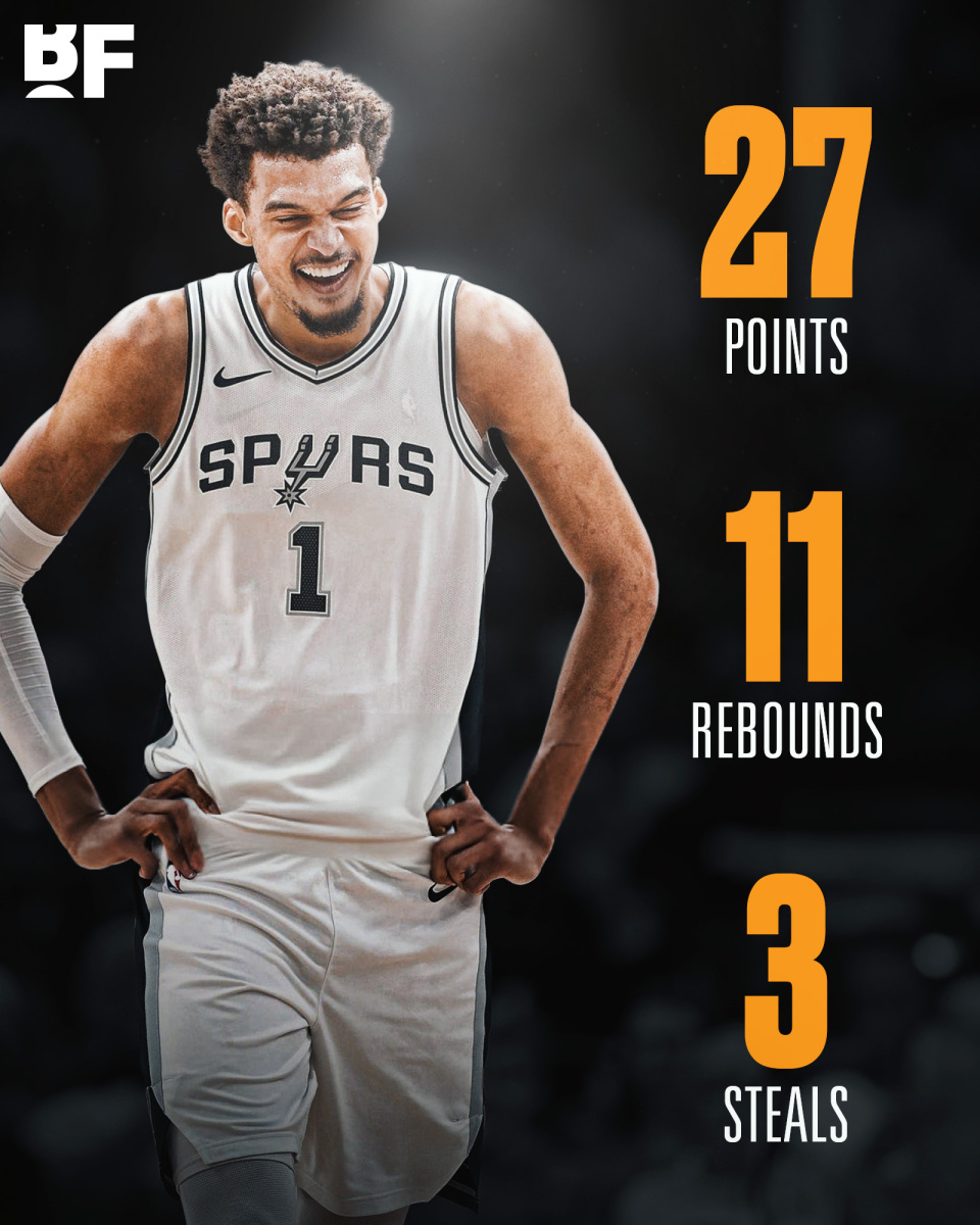 北京时间10月14日,NBA季前赛马刺客场对阵步行者,文班亚马出战24分钟,13投9中、三分3中2轰下27分11篮板4助攻3抢断1盖帽,打出伤愈复出以来的最强一战,得分和篮板均创今年季前赛新高,多次逆天暴扣太蛮横,增肌归来的文班确实太强了,不过全场7次失误太多了。